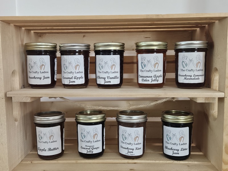 Strawberry, Blueberry Lime, Strawberry Kiwi (low sugar), Cinnamon Apple Cider Jelly, Cherry Vanilla, Caramel Apple, Strawberry Lemonade Marmalade, Concord Grape Jelly, Apple Butter